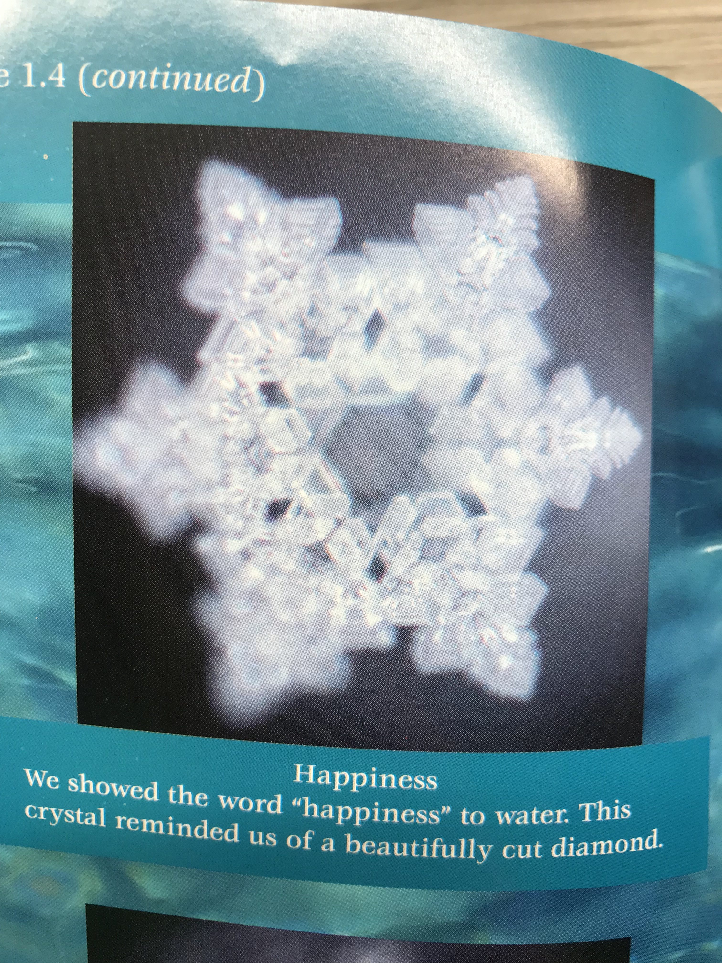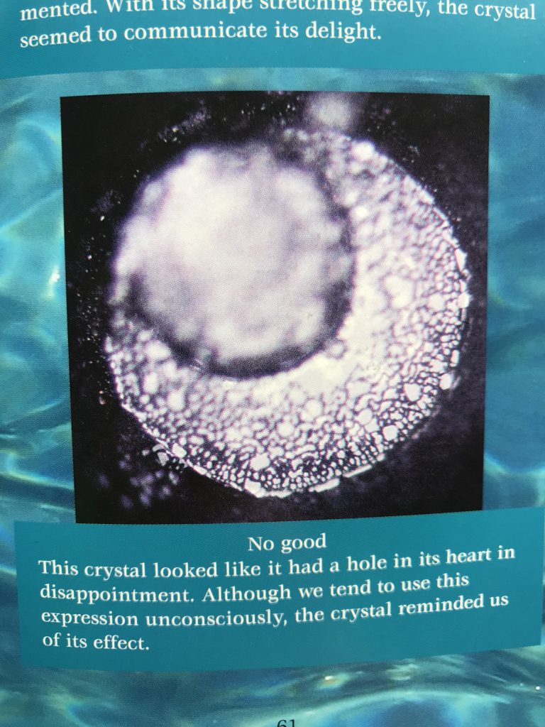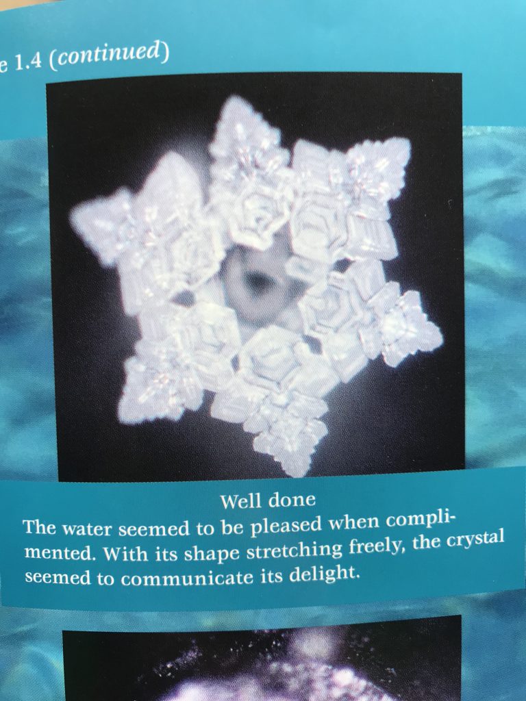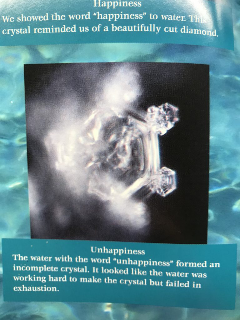 Jag läser en så fascinerande bok just nu. En japansk forskare har studerat vatten och fotograferat dess molekyler och jämfört dem med varandra. Vatten som behandlas olika ser olika ut. Kolla på bilderna nedan så får ni se – helt otroligt!