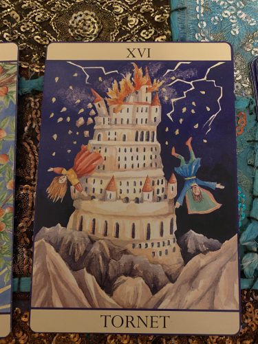 Tornet: Hoppsan Kerstin! Här kom ett oväntat kort som final.. Det här är ett klassiskt kort som förebådar stora förändringar i ditt liv. Om vi tittar på de två första korten i dagens läggning så kan det tyda på att du redan under en lång tid känt på dig att det är något stort på gång. Nu pratar jag verkligen inte om någon uppstigning till 5D eller sådant – nu handlar det om ditt liv. Du kan möta någon som ger dig helt andra tankar, eller som påverkar dig till att skynda på den här förändringen. Rensa luften med dig själv, gör dig av med hemligheter – städa ditt inre för du kommer att få en lättare färd om du startar den med ett nystädat inre. Var beredd på att planer kan ändras, skrotas eller ifrågasättas. Förvänta dig det oväntade. Det kan kännas som om allting rasar – men i själva verket är det nödvändigt för att du ska kunna få lite ordning. Som när man river ur hela garderoben och sen sorterar, hänger in och gör fint. Allt känns nytt och fräscht – trots att det är samma kläder. Bara mer ordning.