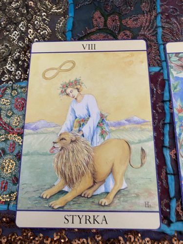 Styrka: Det här kortet visar att kärlek är det bästa sättet att närma sig problem och situationer som du möter nu. Styrka är att våga visa kärlek och ödmjukhet – och när du går med den typen av styrka så kommer du också få modet att handla.