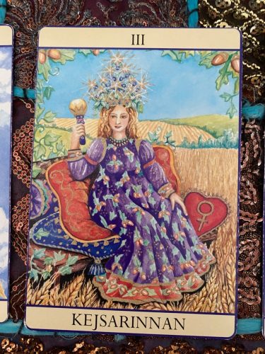 Det här kortet handlar om att bejaka allt det vackra i dig. Det är dags för dig att blomstra, dansa, älska, drömma och växa. Njut av det du älskar och värdesätter – utan att bry dig om vad andra tänker eller tycker. Kejsarinnan är ett kort för förbund, för kärlek och romantik, familj och barn. Hon välsignar allt som är kopplat till detta, och du måste börja med kärleken till dig själv.
