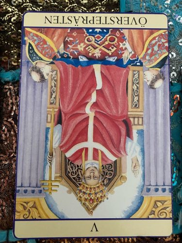 Det här kortet står för oreda och förvirring när det kommer upp omvänt. Du kanske upplever att du ifrågasätter dina värderingar och åsikter, och det kan vara en person du mött som får dig att känna så. Gamla vanor och relationer kan kännas utnötta och du längtar till något nytt. Detta hör ihop med den resa du är på nu. Resan mot din fullständiga tillit till din själ och din resa mot att leva i sanning med din värdegrund. Du kan uppleva att du kanske lurat dig själv i viktiga ställningstaganden. Om du känner att det är dags att förändra något så kommer du att kunna göra det nu, med mjuka händer och utan bryska avslut. Det finns ingen motsättning. Du kan leva efter din inre kompass samtidigt som du avslutar delar av ditt liv om du behöver göra det. Med tiden kommer du att förstå fullt ut vem du är och vad din väg behöver ta dig i detta livet. Vi har alla vår egen väg att gå. Vi kan aldrig gå någon annans väg. Vi kan slå följe en bit, men vi behöver också hitta modet att vika av, gå vår egen väg när det behövs.