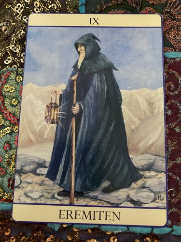 I gränslandet mellan gammalt och nytt står Eremiten och påminner dig om att du nu behöver en tid av lugn och ro. Du behöver stanna upp, reflektera och fundera – göra planer för din färd.