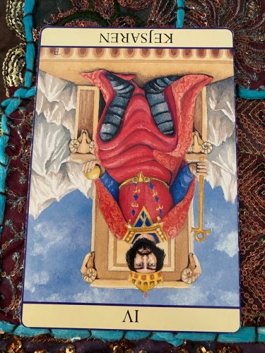 Omvänt berättar det här kortet om en tid som kan vara fullt av tveksamhet och obeslutsamhet. Du vill vara stark men vacklar eller ger upp. Din viljestyrka sviker dig och du kan känna dig hjälplös och svag. Denna känsla kan komma från någon i din närhet som liksom smittar dig med sin egen känsla av svaghet. Var lite på din vakt – och var medveten om att inte alla känslor kommer från dig.
