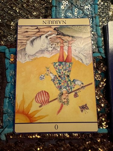 Inga kort utan en liten varning – den kommer Narren med nu som sista kort och dessutom omvänt. Du måste vara beredd att stanna upp nu, och lyssna inåt. Det händer mycket runtomkring dig och du kan känna dig lite förvirrad av alla intryck – och missa det uppenbara.