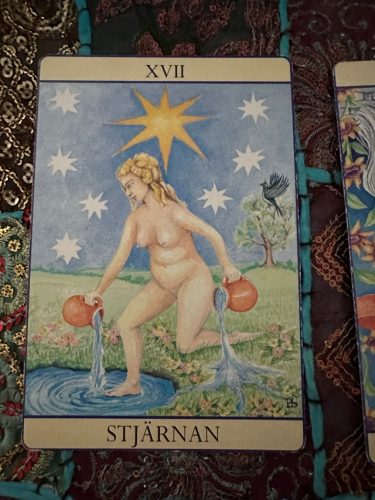 Stjärnorna på kortet visar att du är omringad av människor som vill dig väl – du behöver tro på det och ha tillit till att de finns där för dig. Du kan lätt bli misstänksam och tänka att den som erbjuder dig något alltid vill ha något annat i utbyte.