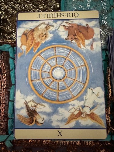 Omvänt kan det här kortet visa på att du känner att du stannat till, och inte kommer vidare. Du är fast i rondellen, har missat din station, eller en känsla av att du inte har kontrollen längre. Hjulet kanske snurrar för fort, så att du blir yr och inte hittar ditt fokus.
