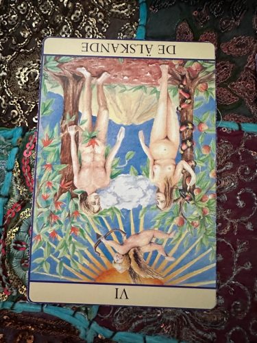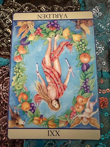 Omvänt står det här kortet för svårigheter eller tvekan i samband med ett beslut som du behöver ta, eller ett beslut som du tagit i det förgångna som dykt upp igen – kanske i en annan skepnad. Det handlar ofta om relationer och här kan det vara så att en relation som du upplevt som stabil och trygg nu börjar skaka. Någon kan älska mer än den andra, eller så kan det handla om svek i arbetsrelaterade relationer. Du kanske vacklar i dina känslor, mellan hjärna och hjärta och du frågar dig vad du verkligen vill och känner.