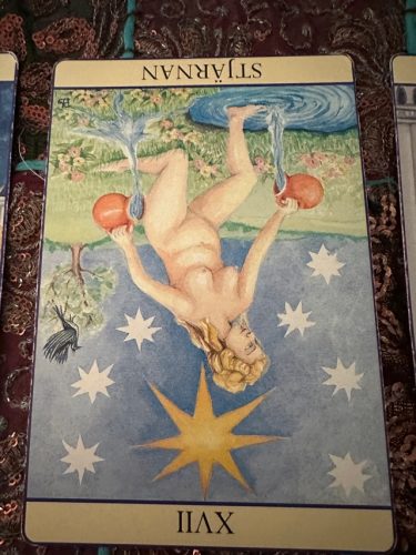 Ni ska få kort idag också – och här kommer de. Det första kortet som kom upp är Döden, väldigt passande just idag. Och Stjärnan – den kommer tillbaka gång på gång – i alla mina läggningar nuförtiden. Vad kan det betyda tror ni?